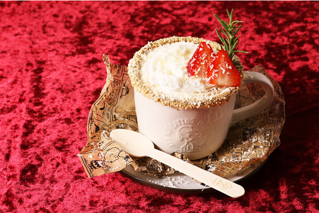 クリーミーなチーズケーキフレーバーのカフェオレにホイップクリームといちごをトッピング。 雪に見立てた削りクリームチーズの塩味とホイップの甘みがマッチしていて、ホッと身体があたたまるスイーツドリンク。