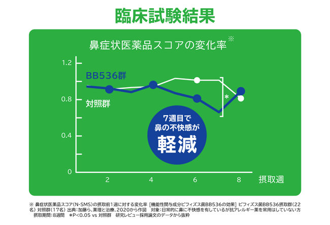 <「ビフィズス菌BB536」鼻の不快感を軽減する作用に関する臨床試験結果>