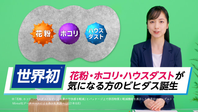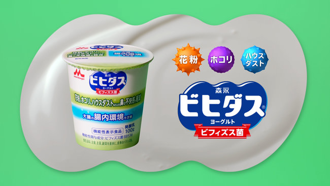 森永乳業は、50年以上にわたって腸内細菌(腸内フローラ)やビフィズス菌の研究に取り組んできました。中でも森永乳業独自のビフィズス菌である「ビフィズス菌BB536」では、2006年から2020年にかけて花粉、ホコリ、ハウスダストなどによる鼻の不快感を軽減する作用を発見し、研究成果として発表してきました。その「ビフィズス菌BB536」を配合した「ビヒダスヨーグルト」は、2021年9月、“大腸から日々の健康をサポートするビフィズス菌入りヨーグルトであること”をよりわかりやすくお伝えするために、“大腸にはビフィズス菌”のアテンションを付けたデザインにリニューアルしています。