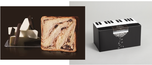 「フロマージュショコラ」は芳醇なフランス産クリームチーズとショコラを織り込んだマーブルデニッシュです。パッケージは従来のオレンジのイメージを一新し、黒と白をベースにしたスペシャルエディション。ピアノをイメージしたパッケージはグランマーブル所属ピアニストの中野公揮のオペラ座出演を記念した特別仕様のデザインとなっています。