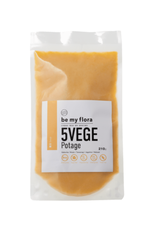 “かぼちゃ・人参・玉ねぎ・じゃがいも・白菜”5つの野菜を栄養たっぷりの「be my flora ベジブロス」で煮込んだ後ペースト状にし、無調整豆乳と塩で整えたポタージュ。栄養価が高く優しい味わいなので大人はもちろん、お子様の離乳食としてもおすすめです。