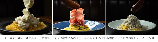 フォトジェニックなメニューや話題のスイーツを取り揃え目でも舌でも味わえるラインアップとなっており、なかでも多くのメディアに取り上げられた「乗せ放題パスタ」シリーズや大きなパルマチーズの中で絡めて仕上げる「THE カルボナーラ」、「イタリアンジェラートの生搾りモンブラン」は大好評のメニューとなっております。冬メニューとして登場したばかりの厚岸産牡蠣をつかったメニューもお楽しみいただけます。