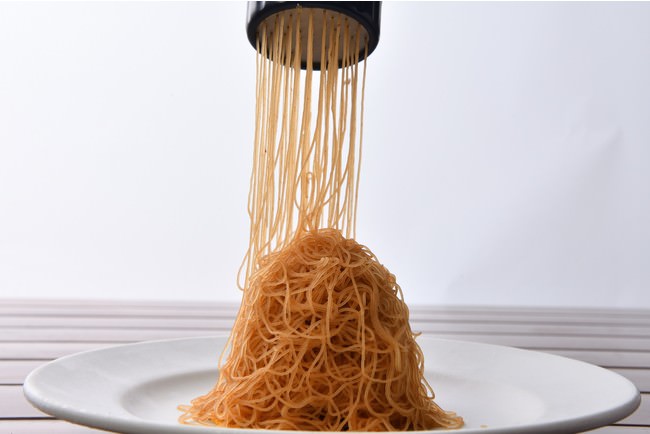 ソルトキャラメル味のイタリアンジェラートに、搾り機を使用してお客様の目の前で一つ一つ丁寧に生搾りします。モンブランが搾られるライブ感はまさにフォトジェニック!