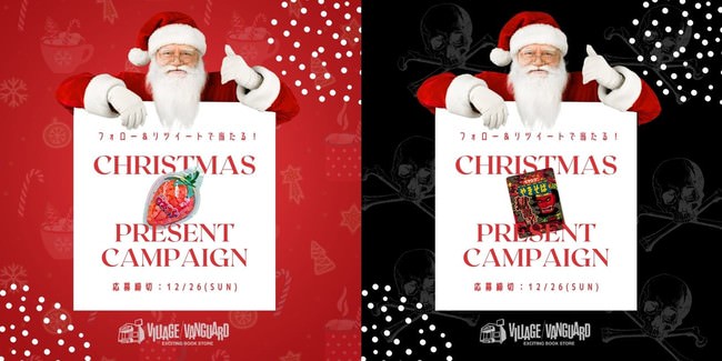 株式会社ヴィレッジヴァンガードコーポレーション(所在地:愛知県名古屋市、代表取締役社長:白川篤典)では、2021年12月21日(火)より公式TwitterとInstagramにおいて、『優しいサンタさんが来るとは限らない!?DEAD or ALIVE クリスマスプレゼントキャンペーン』を開始いたしました。