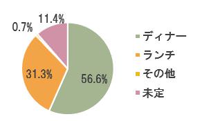 A.「ディナー」56.6%、「ランチ」31.3%、 「その他」0.7%、「未定」11.4%