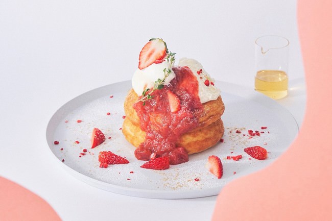 ◇ “あすかルビー”いちごとルバーブのコンフィチュール、ヨーグルトムースのパンケーキ はちみつレモンソース(税込1,540円)