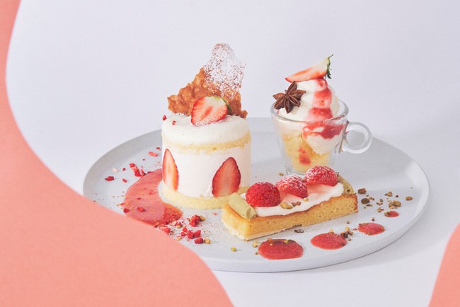 果汁が多くジュワッと甘酸っぱい“あすかルビー”の特徴を最大限活かし、相性の良い〈スパイス〉を効かせて創りあげた大人のいちごデザートを展開。「“あすかルビー”いちごとルバーブのコンフィチュール、ヨーグルトムースのパンケーキ」や「“あすかルビー”いちごショートケーキ」「濃厚ショコラテリーヌ “あすかルビー”いちごソース」など、苺好きさんも唸るとっておきの“あすかルビー”デザートで、いちごの新しいおいしさをお届けします。