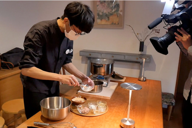 (3)プランナー谷さんによる実演調理。はんぺんを作りました。