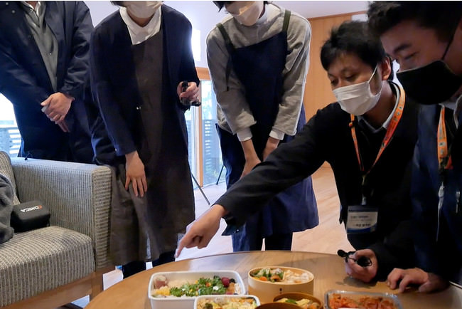 (1)まずはスタッフ全員によるお弁当プレゼン。お題である“スミクイウオ”の“ひつまぶし”や“さつま揚げ”、“ハンバーグ”など様々なアレンジメニューが登場しました。