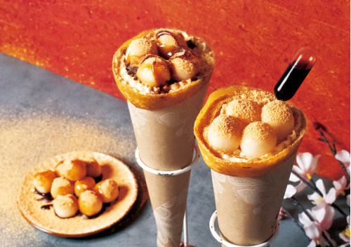 もちもちの白玉にたっぷりきな粉と黒蜜を合わせた和クレープです。