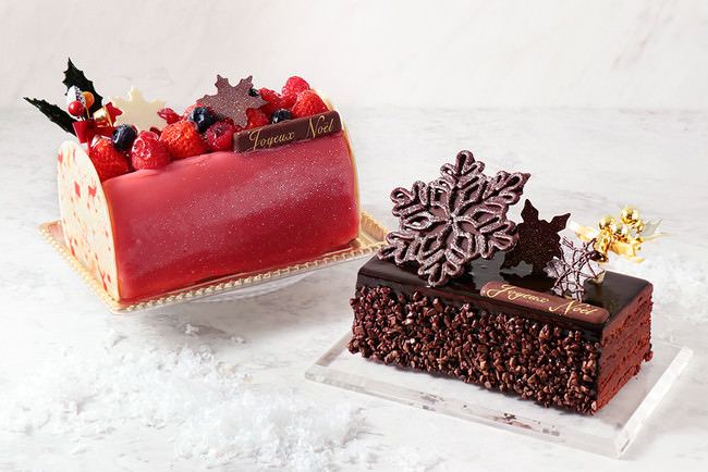 濃厚な味わいのチョコレートケーキ「リュクスアメール」、伝統的なケーキをショコラでアレンジした「ブッシュ ド ノエルルージュ」と、雪を散らしたような美しい「ノエルネージュ」、リッチなルックスと味わいを追求した「ショコラ ド ノエル」など、それぞれショコラの美味しさをたっぷり味わっていただけるクリスマスケーキとなっております。