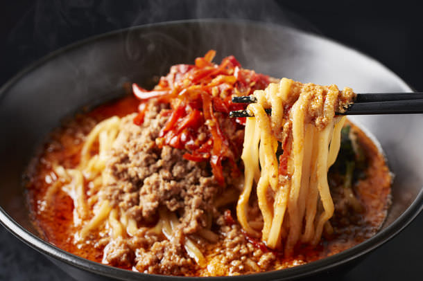 (1)訪れる担担麺・激辛マニアたちの心を掴んで離さない「地獄の担担麺天竜」がいつでも、どこでも食べられて、お店の味をそのまま味わっていただけるよう改良を重ねました。瞬間冷凍することで、湯煎で解凍し、麺を茹でるだけで完成する満足の1品になっております。