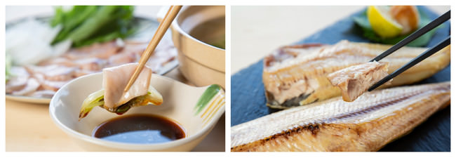 北海道羅臼産の鰤と真ほっけを使った「鰤のしゃぶしゃぶ」、「真ほっけの干物」