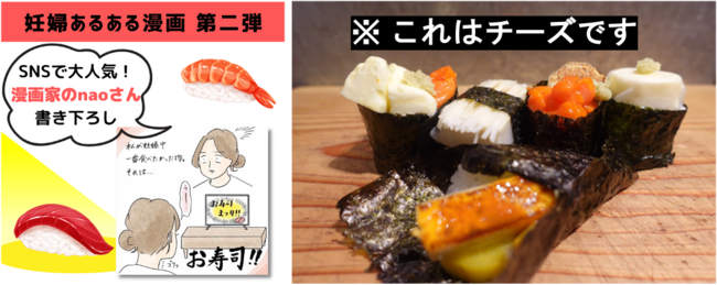 六甲バター株式会社(兵庫県神戸市中央区坂口通1-3-13 代表取締役社長 塚本浩康 以下、QBB)は“妊婦さんのリアルな声に寄り添うプロジェクト”、「QBB ベイビーチーズ for mom」を展開しています。今回、妊婦さんへのヒアリングで聞こえてきた、「妊娠中でも我慢せずお寿司を食べたい!」という声に向き合い、チーズで本物のお寿司を再現したオリジナルの“似せ寿司”を考案。豪華なご馳走が並ぶ年末年始に妊婦さんも楽しめるように、レシピを公開しました。また、前回好評だった「妊婦あるある漫画」の第二弾も公開しました。