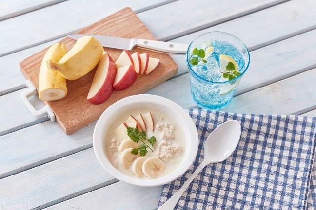 ②食べる際にりんごやバナナをトッピングする。