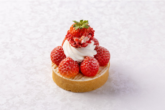 タルトの上に太鼓型(タンバル)に乗せたストロベリームースの周りを、ゼリーに包まれて輝くいちごとホワイトチョコレートで飾った、まるでティアラのようなかわいらしいケーキです。