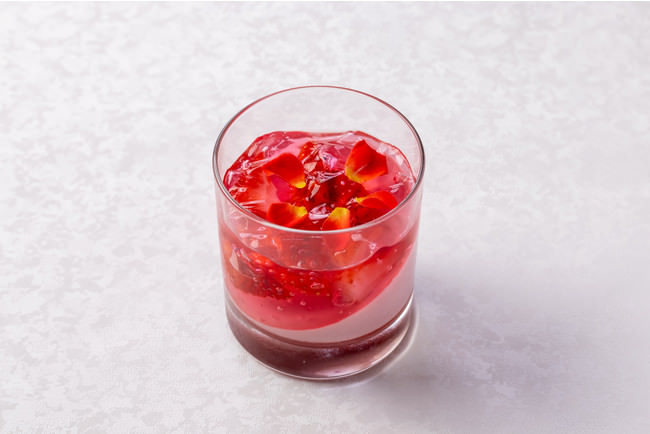 自家製のいちごのジュレに、ストロベリームースを重ね、色鮮やかな赤いローズゼリーを斜めに盛った断面も可愛らしいベリーヌです。ゼリーの中にはいちごの果実も入っており、爽やかな口当たりの一品です。