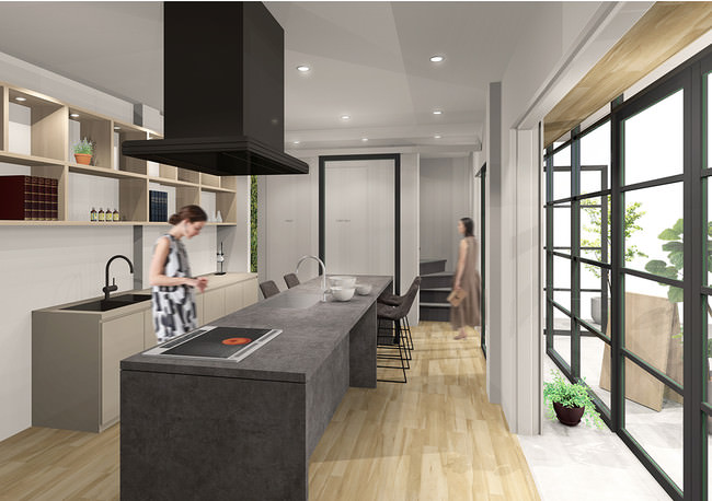 1Fはキッチン完備で、簡単な調理作業のほか、保存した食品の解凍・加熱加工などの作業も行うことができ、実験から効果検証まで1ヶ所で実現できます。