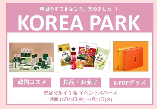 渋谷マルイ(株式会社丸井、本社:東京都中野区、取締役社長:青野 真博)1F イベントスペースにて、話題の韓国アイテムを集めた期間限定イベント「KOREA PARK」(コリアパーク)を開催いたします。