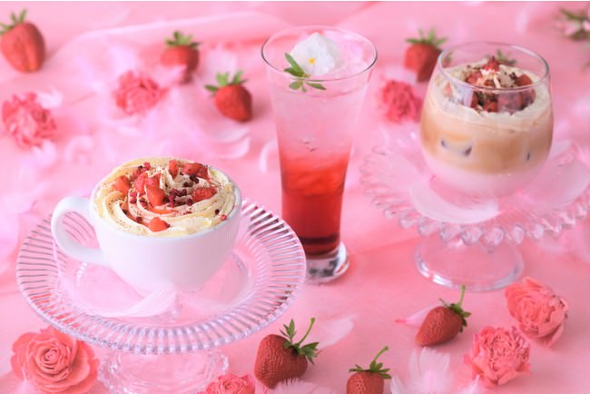 「Strawberry tiramisu latte(HOT/ICE)」 1,100円/「Sparkle berry soda(ICE)」 990円