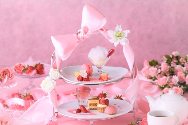大好評のウエディングドレスモチーフのアフタヌーンティーに、苺を散りばめ登場。スイーツはパティシエ特製の「ストロベリーソースとわたあめのフロマージュムース」「イチゴとバニラムースのクレープ」「ストロベリーマカロン」「イチゴの泡をのせたノンアルコールシャンパンジュレ」「ストロベリーミルフィーユ」「ストロベリータルト」「フィナンシェ」をご堪能いただけます。全18種以上のフリーフローとフェア限定ドリンクもお得にお楽しみいただけます。数に限りがあるため、お早めのご予約がおすすめです。