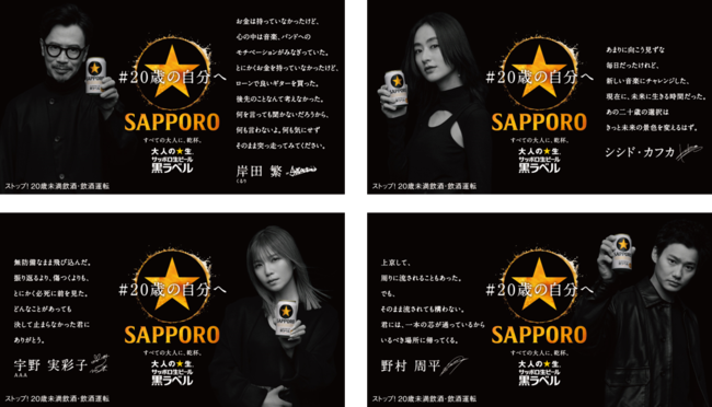 サッポロホールディングス(株)のグループ企業であるサッポロビール(株)は「サッポロ生ビール黒ラベル」のスペシャルコンテンツ「STAR READER」企画の第5弾として、4名の著名人からのスペシャルメッセージなどを楽しむことができる「#20歳の自分へ」コンテンツを12月27日より公開します。