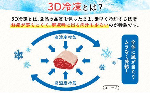 多方向から3Dの冷気でお肉を包み込むように急速冷凍。