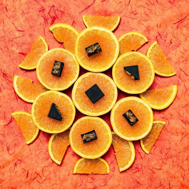 コクのある味わいのシチリアのブラッドオレンジで作ったフィリングを、ダークチョコレートのシェルで包みました。