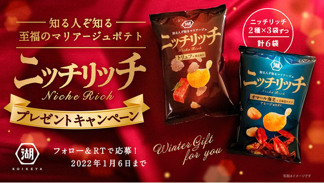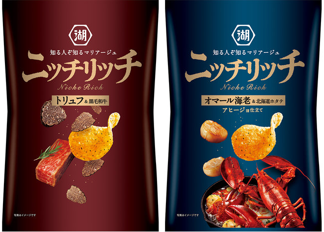 「ニッチリッチ」は昨年12月に期間限定商品として誕生したブランドで、とっておき食材の至福の組み合わせが織りなす新しい味わいを、非日常的な特別感とともに楽しんでいただけるよう開発されたポテトチップスです。大衆的・日常的な既存のスナック菓子にはない、若者を中心とした感度の高い新しいお客様のニーズにお応えするべく生まれた商品であり、昨年の販売時には、比較的単価の高い商品ながら、好調な売れ行きを記録しました。