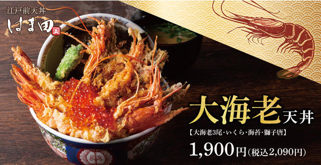 アークランドサービスホールディングス株式会社(本社:東京都千代田区/代表:坂本 守孝、証券コード3085)は、「江戸前天丼 はま田」にて新メニュー「大海老天丼」を2022年1月2日(日)より期間限定で販売いたします。