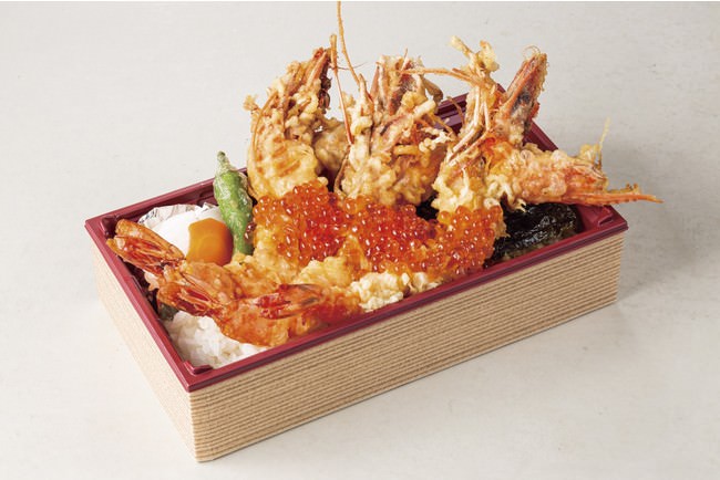 「大海老天丼」は、店内で作りたてはもちろん、お弁当としてテイクアウトも可能です。