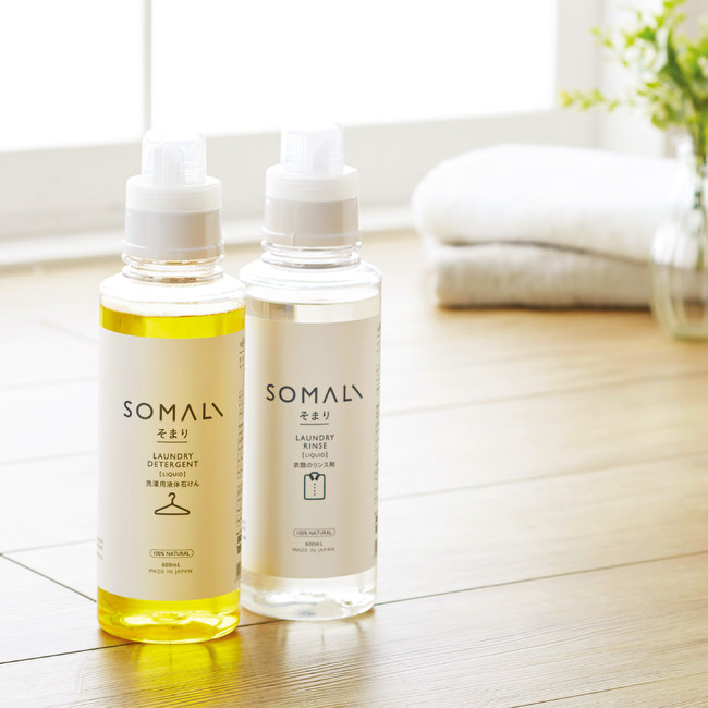 [植物オイル100%の純石けん+天然ミネラル+植物由来の成分]のみでつくられた、液体石けん『SOMALI』で洗い、クエン酸を配合したリンス剤で仕上げます。通常より低い温度で、縮みを防いでゆっくり乾燥。液体石けんは天然のオレンジ精油を配合しています。