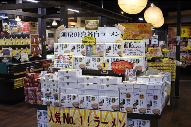 1階は河京オリジナルラーメン関連商品をはじめスタッフがセレクトしたお土産が揃います。