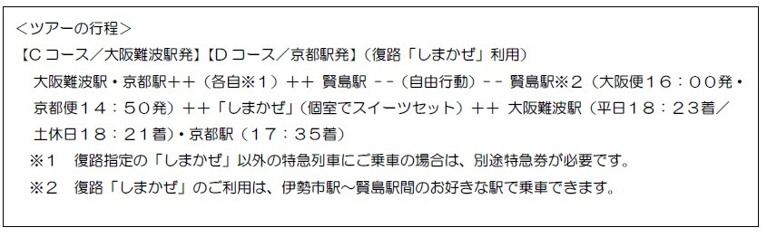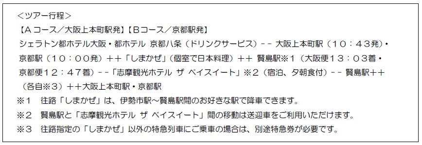 【Aコース】(大阪上本町駅発、往路「しまかぜ」個室利用)