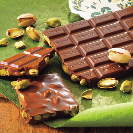 香りが良く、風味豊かなピスタチオをいっそう香ばしくローストして、丸ごとミルクチョコレートにたっぷりと散りばめました。噛むほどに旨みが増し、コクがありながらも後味はすっきり。ダイナミックなサイズの板チョコレートを心ゆくまで味わってください。