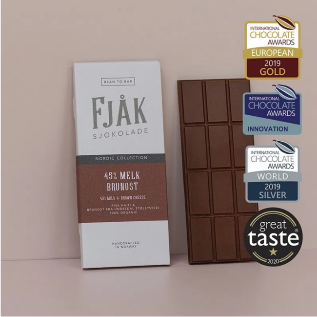 クリーミーにキャラメル状にしたハイチのミルクチョコレートとノルウェーのブラウンチーズ&シーソルトのマリアージュ。ノルウェーのヤギ乳から作られる濃厚な味わいのチーズをミルクチョコレートに加えました。キャラメルのようなブラウンチーズの味わいにシーソルトがアクセントとなり口の中で広がります。ノルウェーのローカルチーズ工場 Undredal Stølsysteriのブラウンチーズ、North Sea Salt Worksのシーソルト、ハイチのPISAノカカオ(認定オーガニック)を使用。