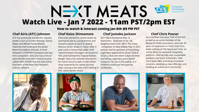 ・内容:アメリカでラーメンバーガーを開発して大成功した島本敬三シェフを始め4名の人気シェフをお招きし、ネクストミーツの代替肉を使ったクッキングLIVEを特別に開催