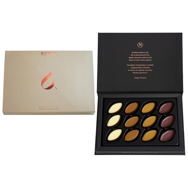フランス発祥のレストランガイド Gault & Millau (ゴ・エ・ミヨ)と 学生時代には学生ソムリエとして様々なコンテストで優勝し、現在 自身のレストランでもミシュランを獲得したソムリエ Yanick Dehandschutter(ヤニク・デハンシャテール)氏、 そしてノイハウスの3者がチームを組み作り上げた、シャンパン&スパークリングの為の贅沢なチョコレートが誕生。