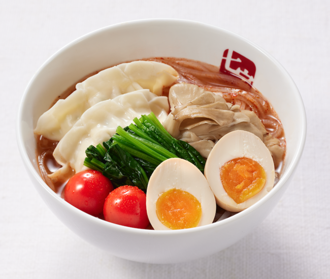 トッピング:餃子20g、味玉50g、ほうれん草15g、舞茸15g、ミニトマト20g