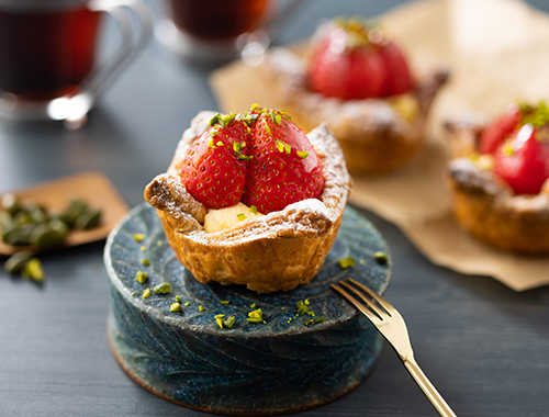 イチゴの甘みと酸味が楽しいタルトやマカロン、ピンチョスなど多彩なアイテムに仕上げました。