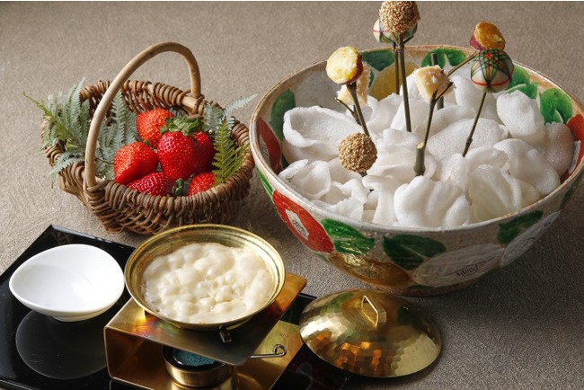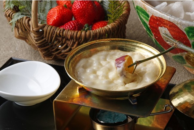 ※料理長が農園に足を運びセレクトしてきたやわらかでジューシーないちご。お好みで「白雪あん」をディップしてお召し上がりいただくと、いちごの甘みがぐっと増します。