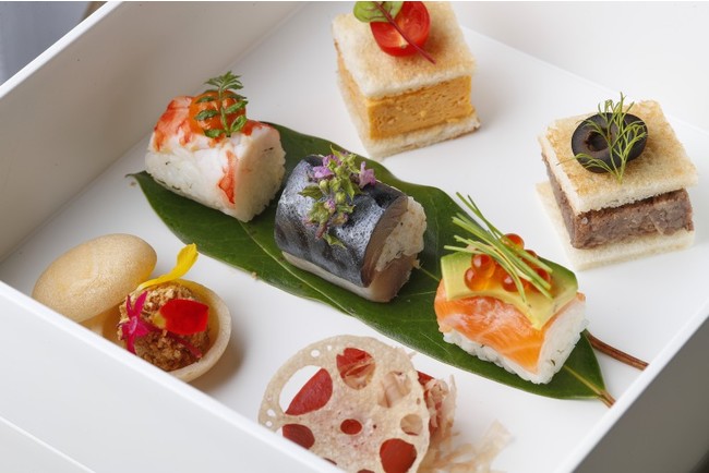 神奈川産の新鮮な鯖を使用しています。他、サーモン、海老の愛らしい棒寿司、朝食で人気の出汁巻き卵を使用したサンドイッチなど。