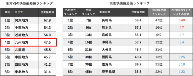 地域別で見れば九州地方は4位ですが、九州地方の8つの県を全国ランキングで比較すると、長崎県は7位、鹿児島県は45位と九州地方の中では格差がある結果となっています。