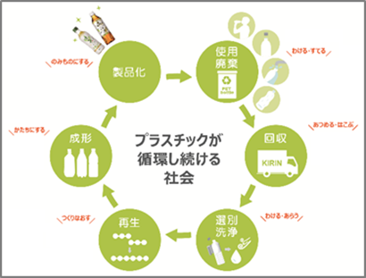キリングループは、社会と企業のレジリエンス強化へ向けた新たなビジョン「キリングループ環境ビジョン2050」を策定し、「容器包装を持続可能に循環している社会」を目指すことを宣言しています。また「キリングループ プラスチックポリシー」では、2027年までに日本国内におけるPET樹脂使用量の50%をリサイクル樹脂にすることを掲げています。