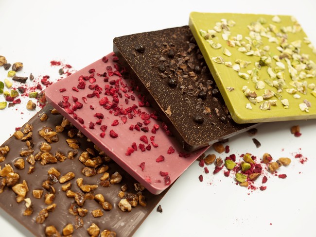 ルビーカカオ豆特有の天然由来の鮮やかピンク色と、ほんのりと酸味が感じられフルーティーな特徴的な自然派チョコレートです。