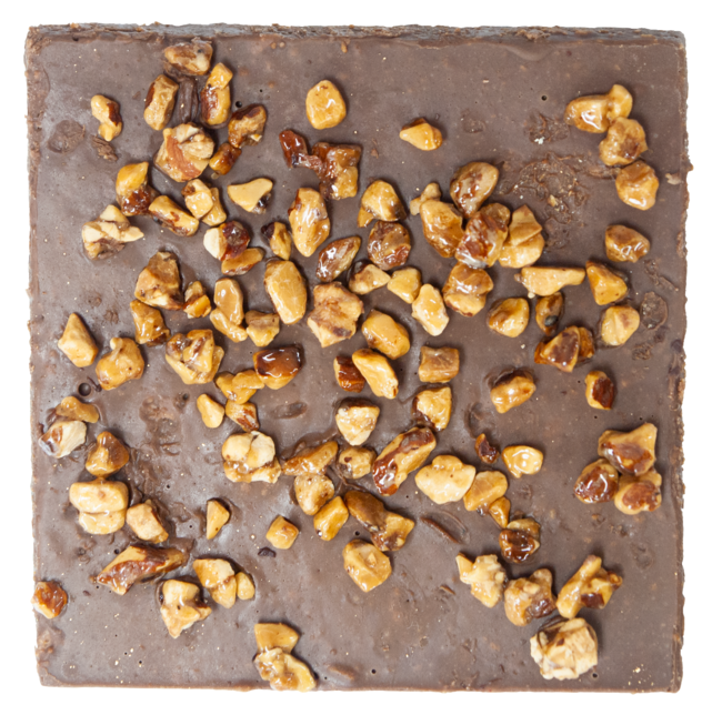 ドミニカ共和国アロヨ・トロ地域で収穫されたカカオを使用しリッチな香りが特徴です。ヘーゼルナッツとアーモンドのサクサク感は味の楽しさが増します。