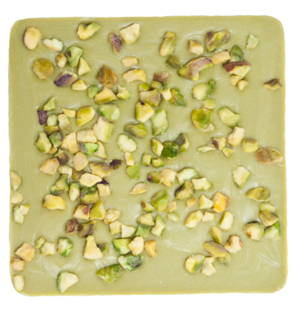 ミルクのコクが際立つホワイトチョコレートにピスタチオの自然な発色とまろやかな風味が特徴的なピスタチオペーストを合わせたピスタチオチョコレートです。ピスタチオクランチの食感も楽しめます。
