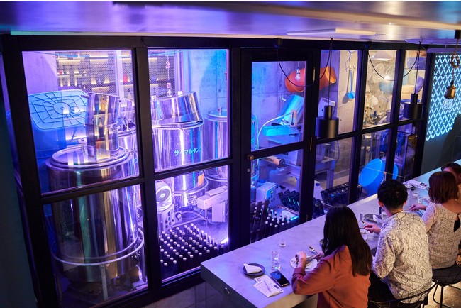 ガラス1枚隔てて併設するレストラン「WAKAZE TOKYO」では、季節ごとに移りかわる醸造所のSAKEと、日本各地の旬の食材を活かした料理のペアリングによる「新感覚SAKE体験」を提供します。