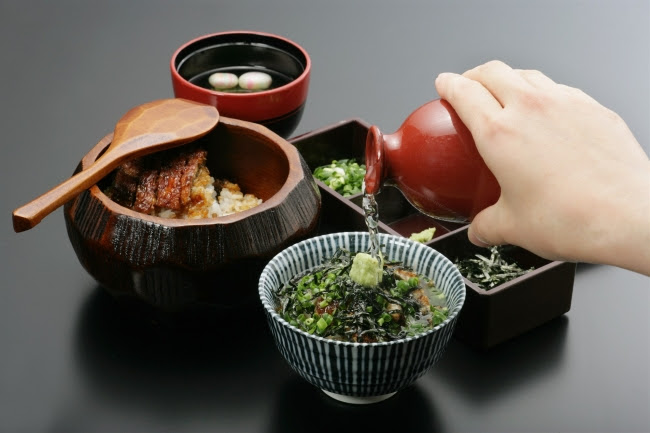 明治6年の創業から、一日数百本分のうなぎの旨みが足されてきたタレにくぐらせながら、高火力の炭火で焼き上げます。その時々に美味しいうなぎを選び、余分な脂をしっかりと落として焼き切ったひつまぶしは、お茶漬けにしても香ばしく、うなぎの旨みが口中に広がります。