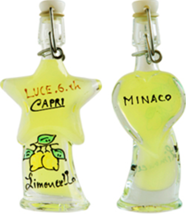 絵付け師によってレモンの絵柄が描かれた数十種類あるデザイン瓶からお好きなものを選び、名前や記念日など手描きのメッセージを入れて世界にひとつだけの贈りものがプレゼントできます。バレンタインデー、ホワイトデーのギフトとして1番人気は、ハート型の小瓶にイタリア語で「Felice Vita!」(「あなたに幸せを!」)のメッセージ入りです。